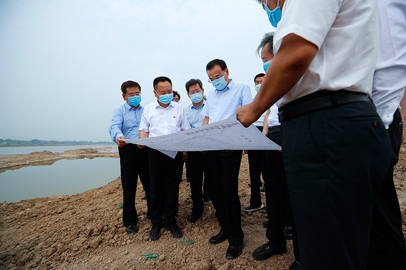 李克强8月18日下午来到河南新乡卫辉市,考察卫河决口堤段修复进展情况。